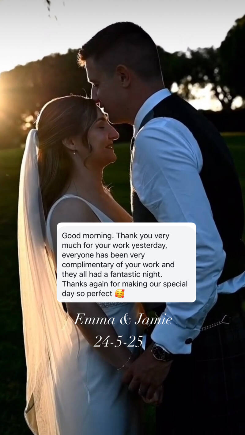 We are so grateful for your fantastic work on our wedding day. Communication in the run up to the day and on the day itself helped ensure everything went smoothly. Our guests had a fantastic day and night and we have since recommended to friends who live in Portugal. I would have no hesitation in recommending your services, and truly felt we got fantastic value for money! Thank you for being so accommodating with all of our requests and for helping make our day so special!